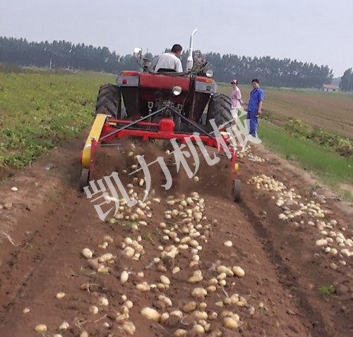 該機用于馬鈴薯收獲,一次可收獲單壟雙行馬鈴薯兩壟,也可收獲單壟單行馬鈴薯三壟,收獲幅寬更適應地塊較大面積作業,收獲效率更高,大大節省了收獲時間,省工省力。